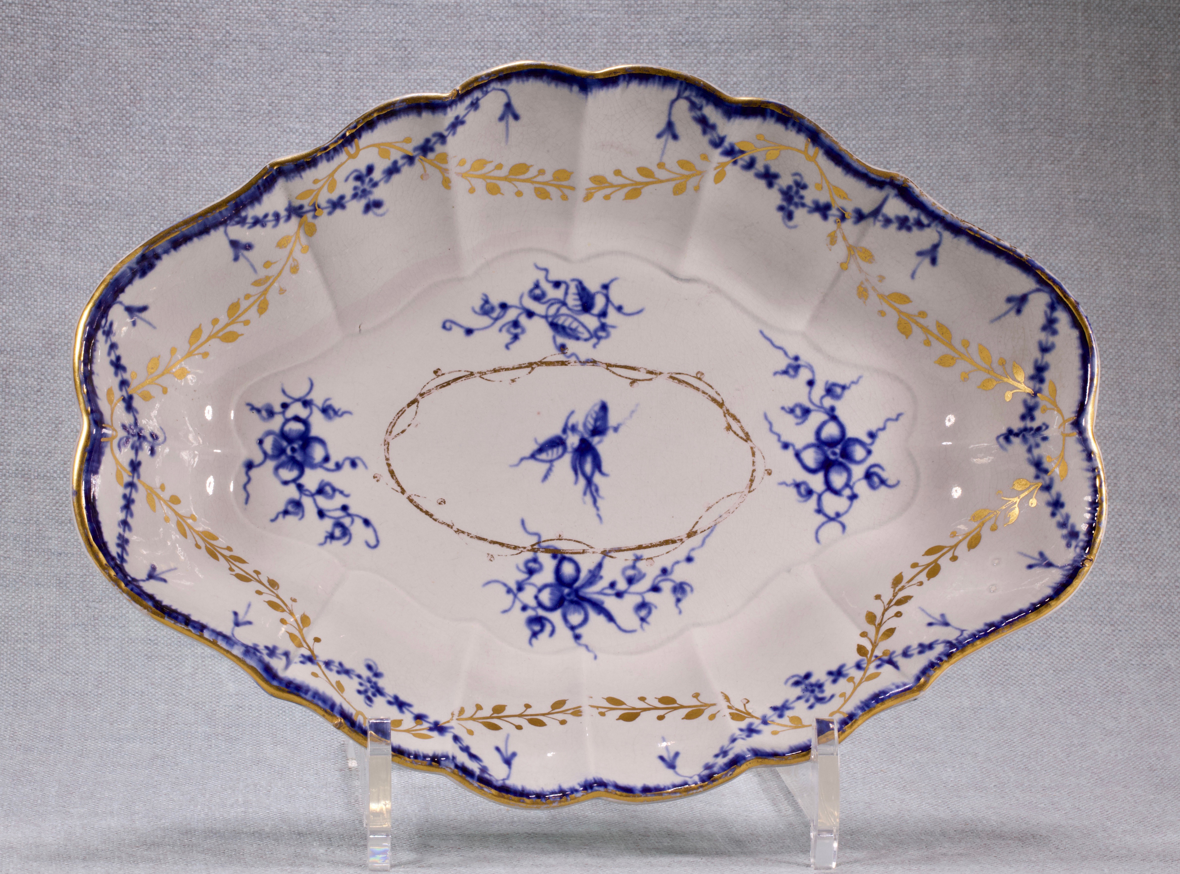 Spode Pearlware shaped Dessert Serving Dish decorated with hand-painted cobalt blue & gilt flower sprigs & swags c1797-1800. Pearlware is earthenware/pottery with a bluish glaze which was popular in the late 18th century & early 19th century.